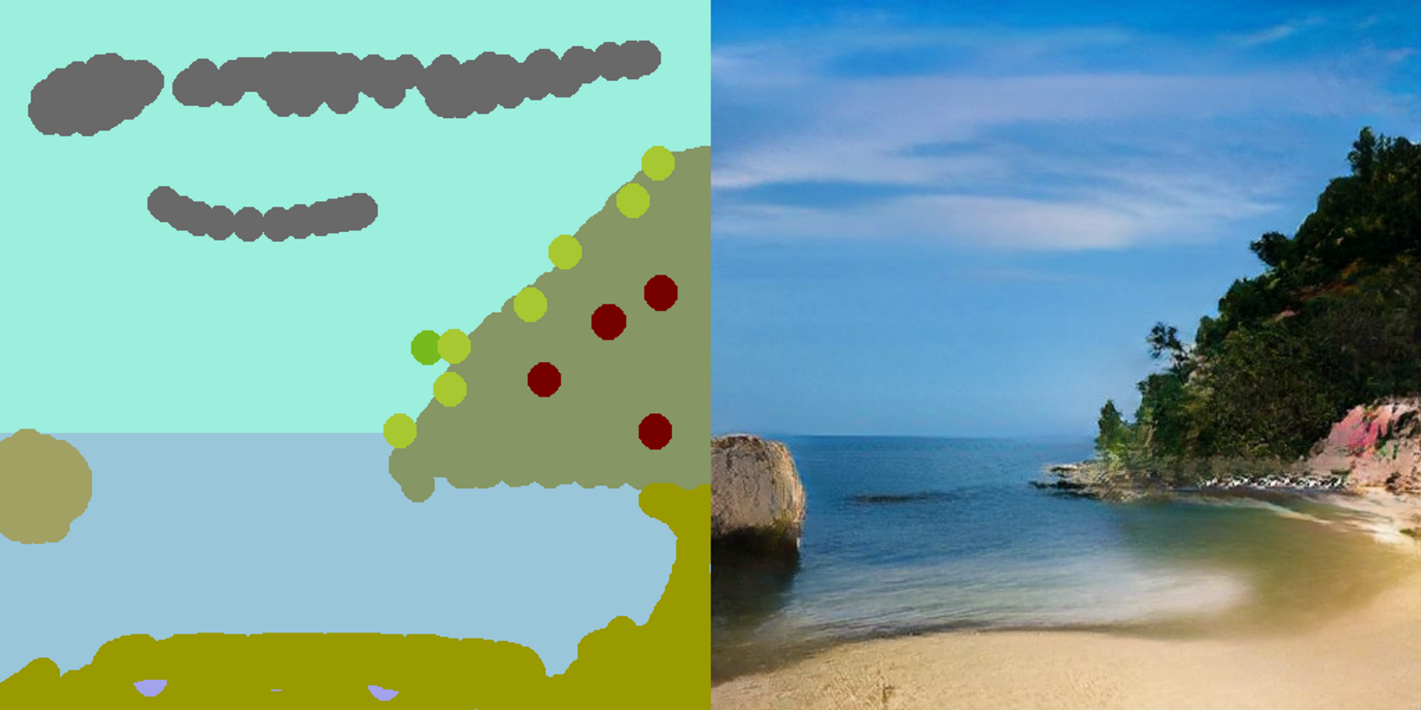 NVIDIA heeft deze techniek ook toegepast op landschappen. Het systeem genereert een realistisch ogend landschap gebasseerd op een abstracte tekening van een landschap. De kleuren op het plaatje betekenen allemaal iets anders, elke kleur staat voor een bepaald materiaal. Zo wordt grijs vertaald naar wolken, lichtblauw naar zee, bordeaux rood naar bloemen, etc.