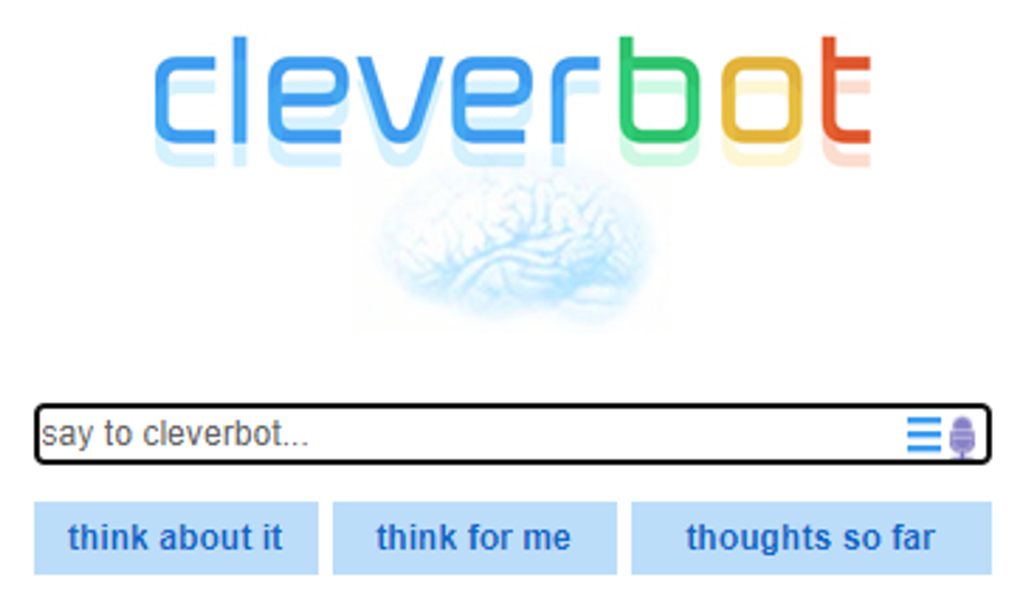 In de Cleverbot website kun je chatten met een chatbot. In één van de latere opdrachten (LINK??) in deze cursus kun je zelf aan de slag met het opzetten van een chatbot.