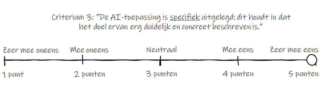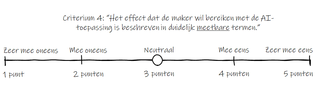 Een voorbeeld van zo’n criterium en van de wijze waarop je een 5-punts schaal kunt maken om een AI-toepassing te scoren: