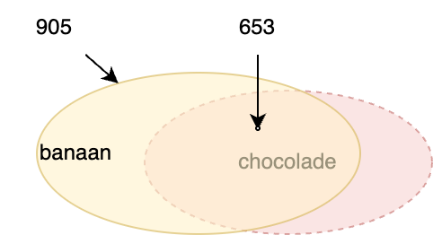 samen kwamen bananen en chocolade 653 keer voor.