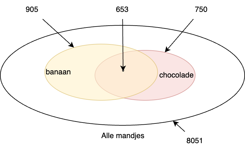 Fig. 3.7 De verzamelingen mandjes, mandjes met bananen, mandjes met chocolade, en met de combinatie.#